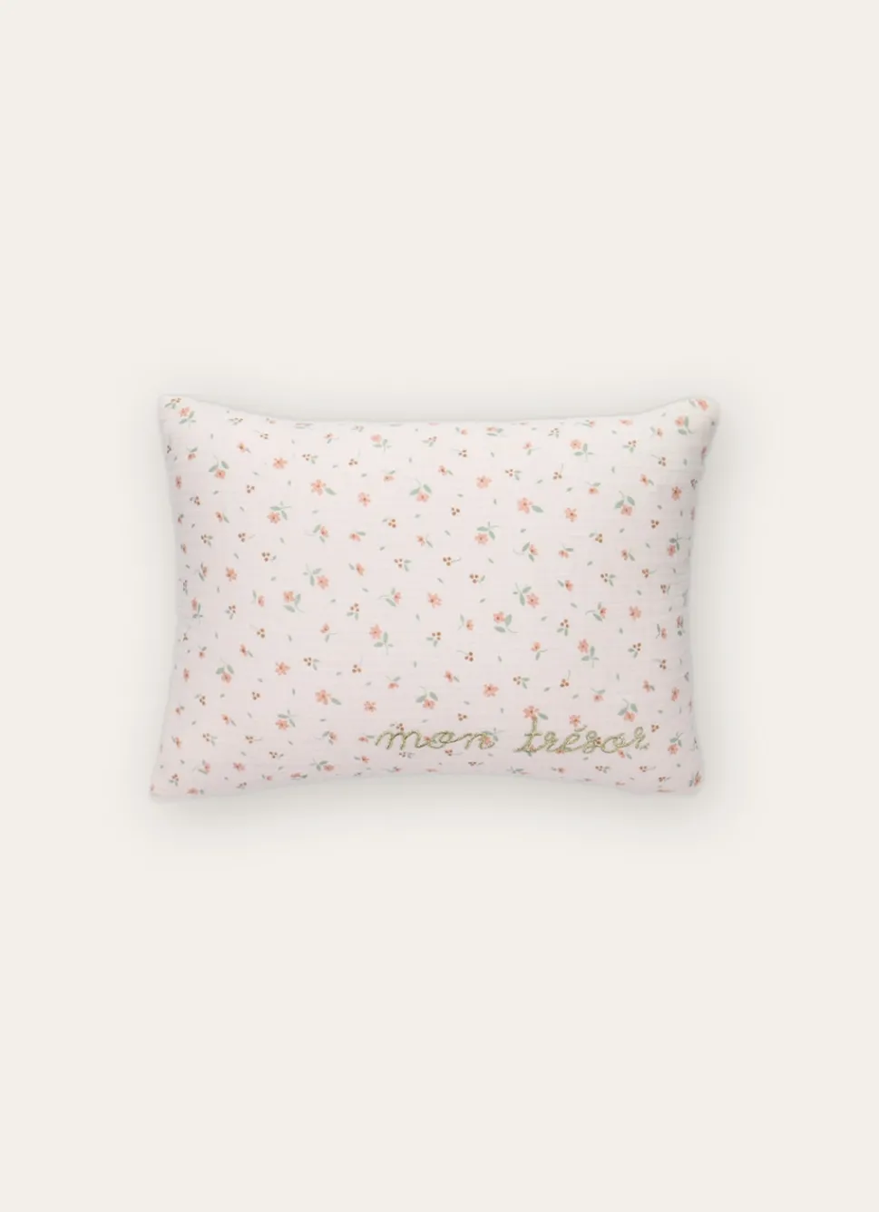 Best Bouchara COUSSIN EN GAZE DE COTON FLEURS ET BRODERIE ÉCRU