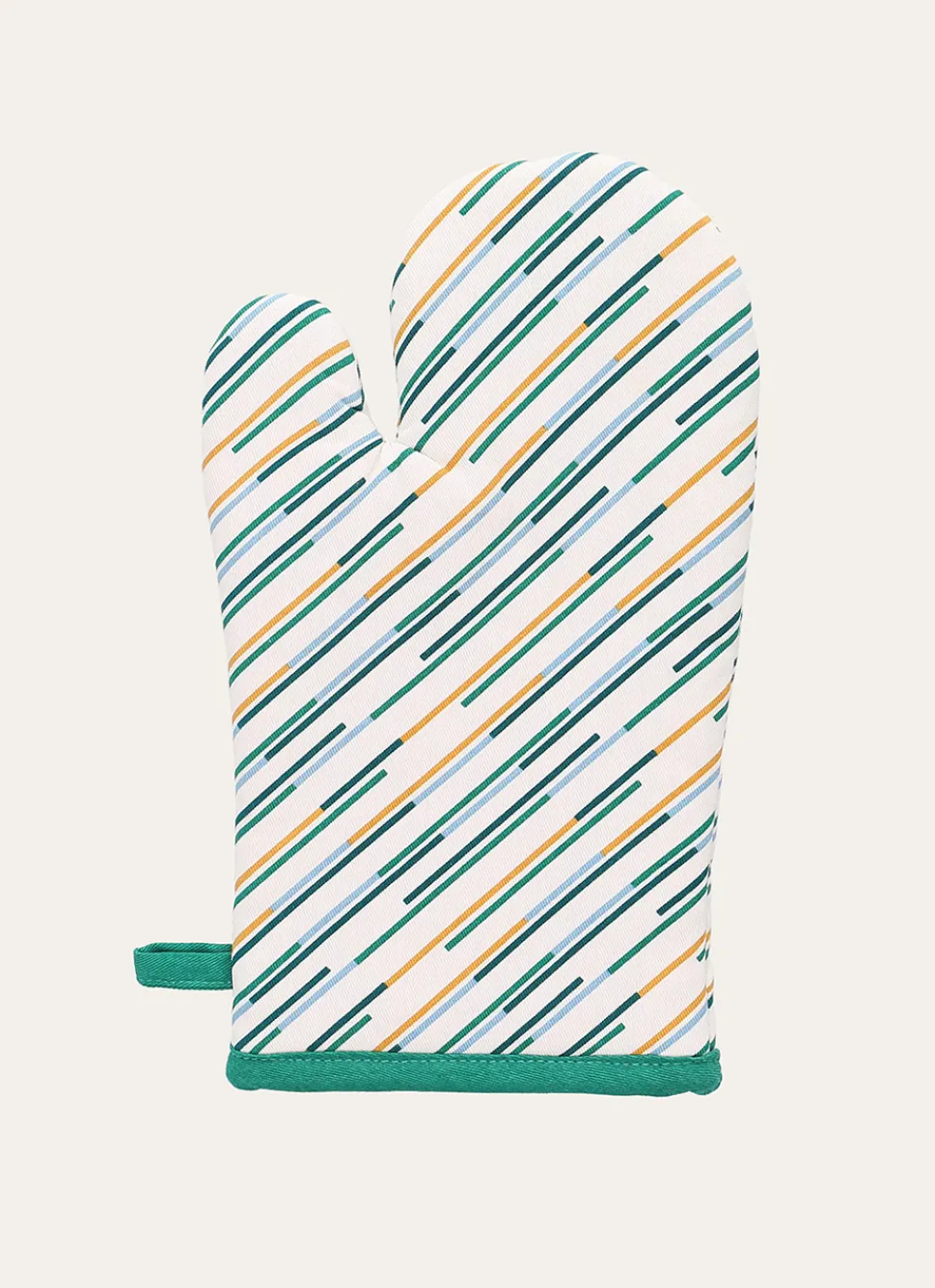 Protégez vos mains avec style grâce à ce gant de cuisine en coton, orné d’un motif de rayures fantaisie en diagonale. Conçu pour allier confort et sécurité, il répond aux normes de protection individuelle et est certifié Oeko-Tex. Ce gant léger et résistant est idéal pour une utilisation quotidienne en toute tranquillité.Dimensions (cm) : 17 X 30