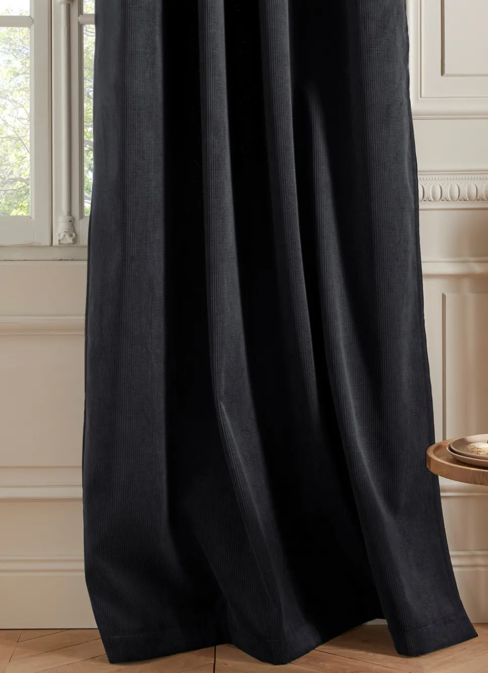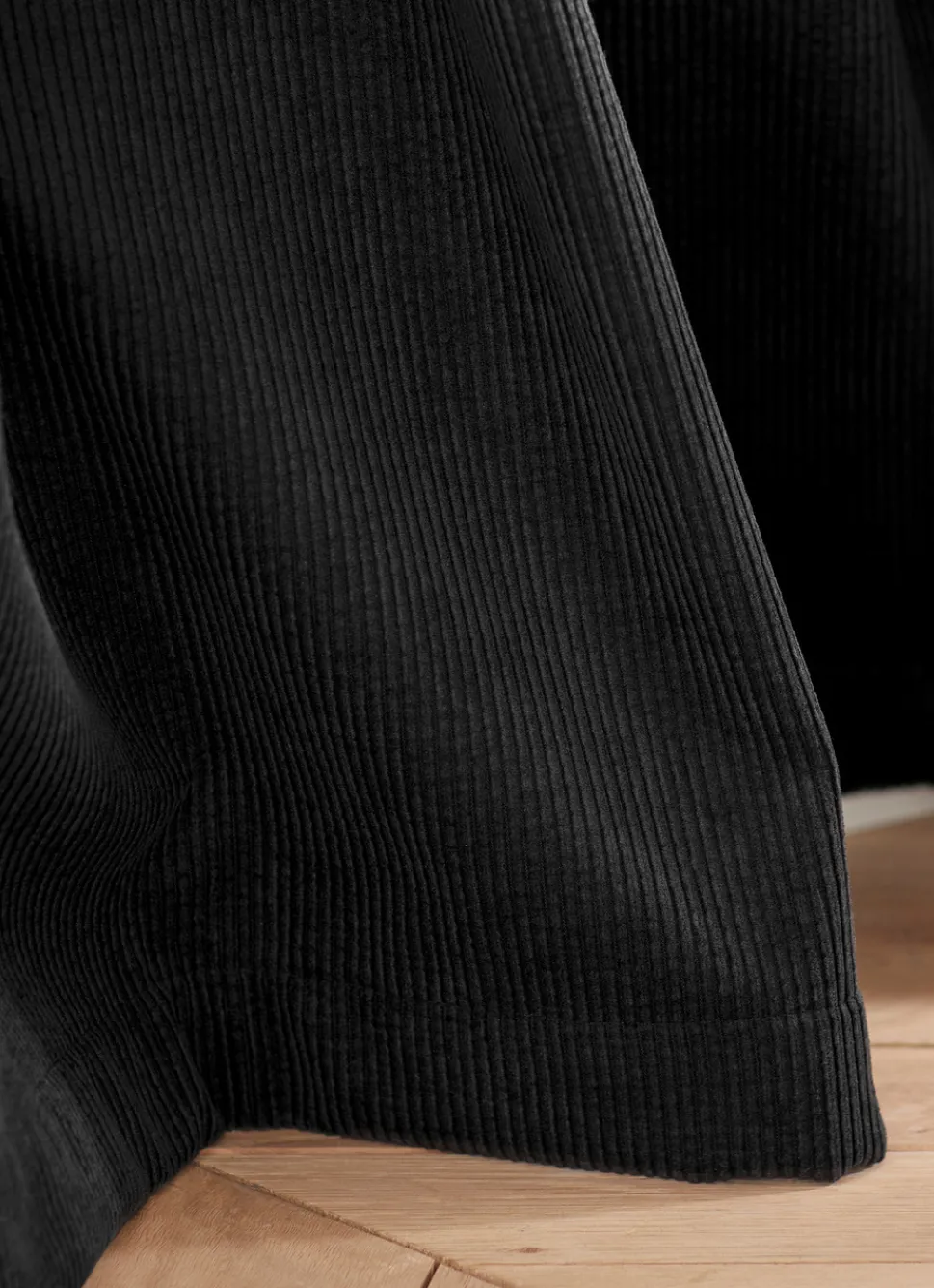 Rideau tamisant uni en velours côtelé. Ce rideau thermique et obscurcissant au tomber parfait ajoutera un effet chaleureux et cosy à votre intérieur. Finition : 8 oeillets ronds en coloris argent mat avec un diamètre intérieur de 4 cm. Décliné en plusieurs coloris. Doublure polaire noire pour les modèles terracotta et noir, et blanche pour le modèle perle. Certifié OEKO-TEX® STANDARD 100. Dimensions (cm) : H260 x L135