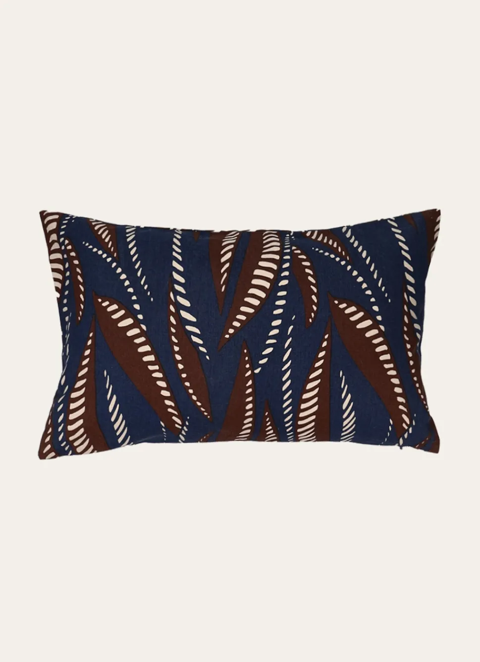 Ce coussin est imprimé d’un motif de feuillage abstrait sur une toile de coton. Les deux faces sont identiques. Déhoussable à l’aide d’une fermeture à glisière invisible. Vendu avec son intérieur. Produit certifié Oeko-Tex®. Dimensions (cm) : 30 x 50.