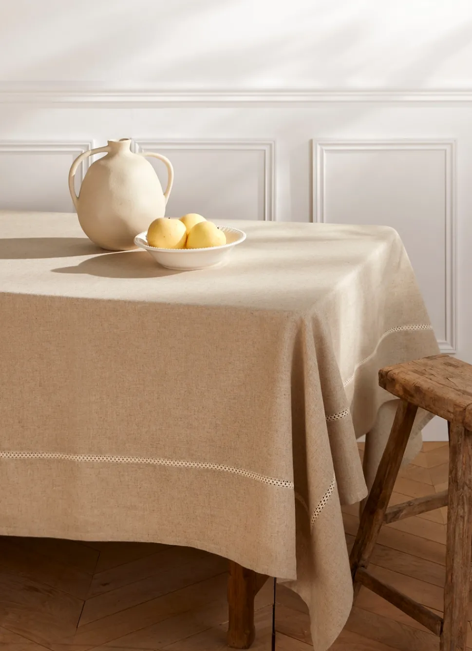 Apportez charme et élégance à votre table avec cette nappe à l’ancienne, délicatement ajourée sur ses quatre bordures et dotée de coins en onglet pour une finition soignée. Confectionnée dans une toile de 180 g/m², elle offre une belle tenue tout en restant légère et agréable au toucher. Parfaite pour les repas du quotidien comme pour sublimer vos tables lors d’occasions spéciales. À associer avec la serviette de table assortie pour une harmonie parfaite. Disponible en format carré, ainsi qu’en deux formats rectangulaires pour s’adapter à toutes les configurations.