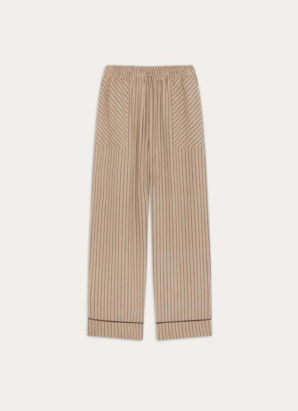 Ce pantalon droit en coton à rayures fil teint allie confort et élégance décontractée. Sa coupe intemporelle et son motif raffiné en font une pièce facile à porter au quotidien, aussi bien à la maison qu’en extérieur.Tailles disponibles : du 34/36 au 46/48