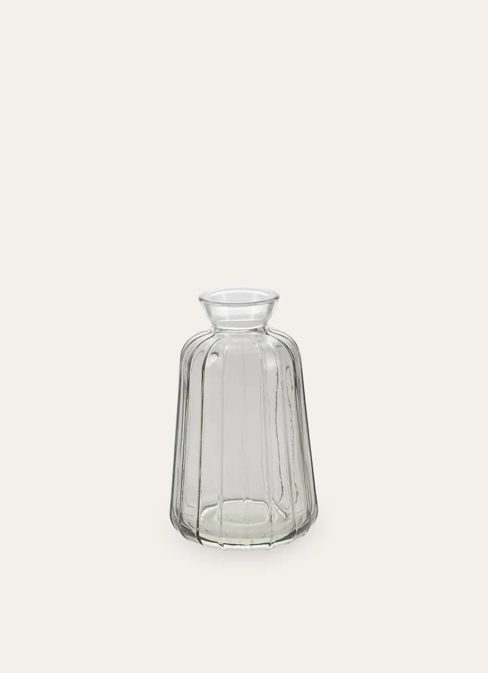 Ce soliflore en verre strié coloré apporte une note élégante et raffinée à votre intérieur. Son design délicat met en valeur vos fleurs fraîches ou séchées. Existe également dans 2 autres formes et coloris pour varier les styles.Dimensions (cm) : 7 x 7 x 11.