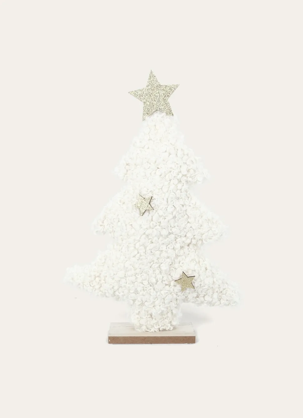 Sapin façon mouton à poser avec décorations en forme d’étoiles. Pour un Noël traditionnel. Dimensions (cm) : H29 x L21 x P5