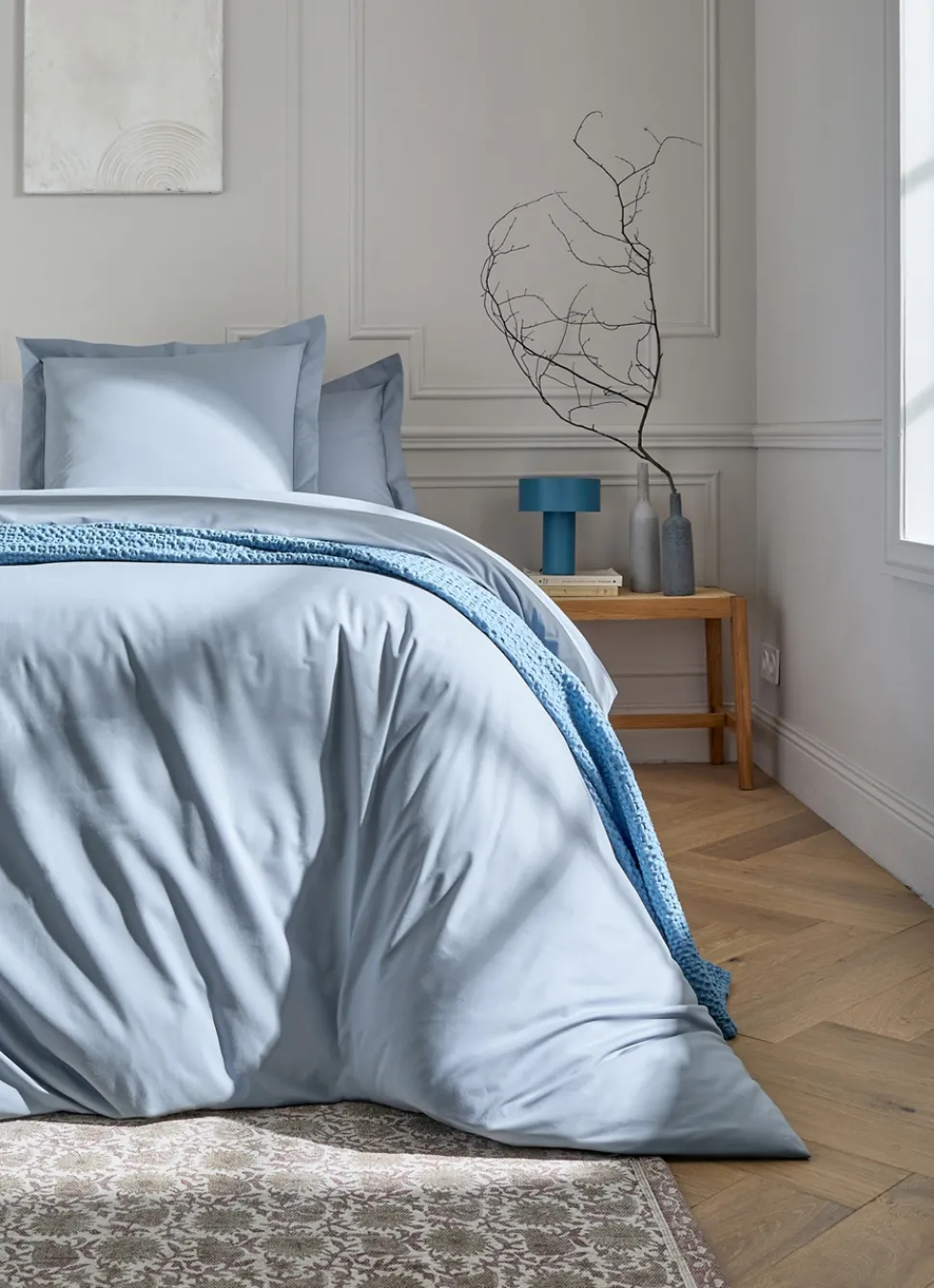 Avec son aspect mat, son toucher lisse et son tissage très serré, la percale de coton est une technique de tissage et non pas une matière. Ces fibres sont peignées en 80 fils/ cm² ou plus. Elle s’adapte à toutes les saisons et dure longtemps tout en gardant aspect neuf et opacité. En effet, la finesse de ses fils garantit une bonne respirabilité et permet de s’adapter à toutes les saisons, été comme hiver le linge sera agréable.