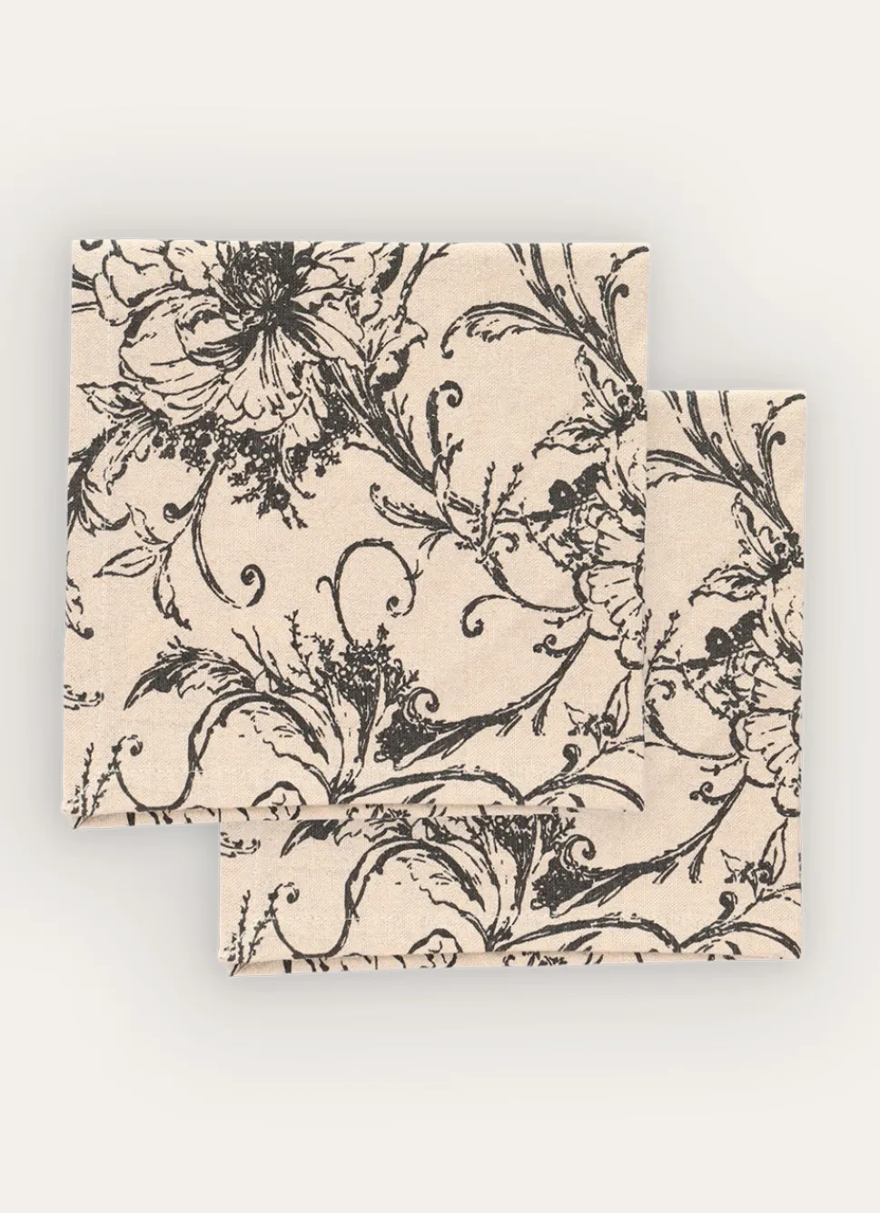 Apportez une touche de charme et de fraîcheur à votre table avec ce lot de 2 serviettes de table en coton, sublimées par un imprimé floral délicat. Conçues pour allier style et praticité, elles sont faciles à entretenir et certifiées Oeko-Tex®, pour une utilisation respectueuse de votre peau.Dimensions (cm) : 40 x 40