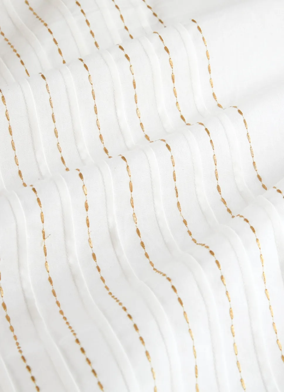 Composition : 100 % COTON – BRODERIE 70 % POLYESTER / 30 % FIL MÉTALLISÉ