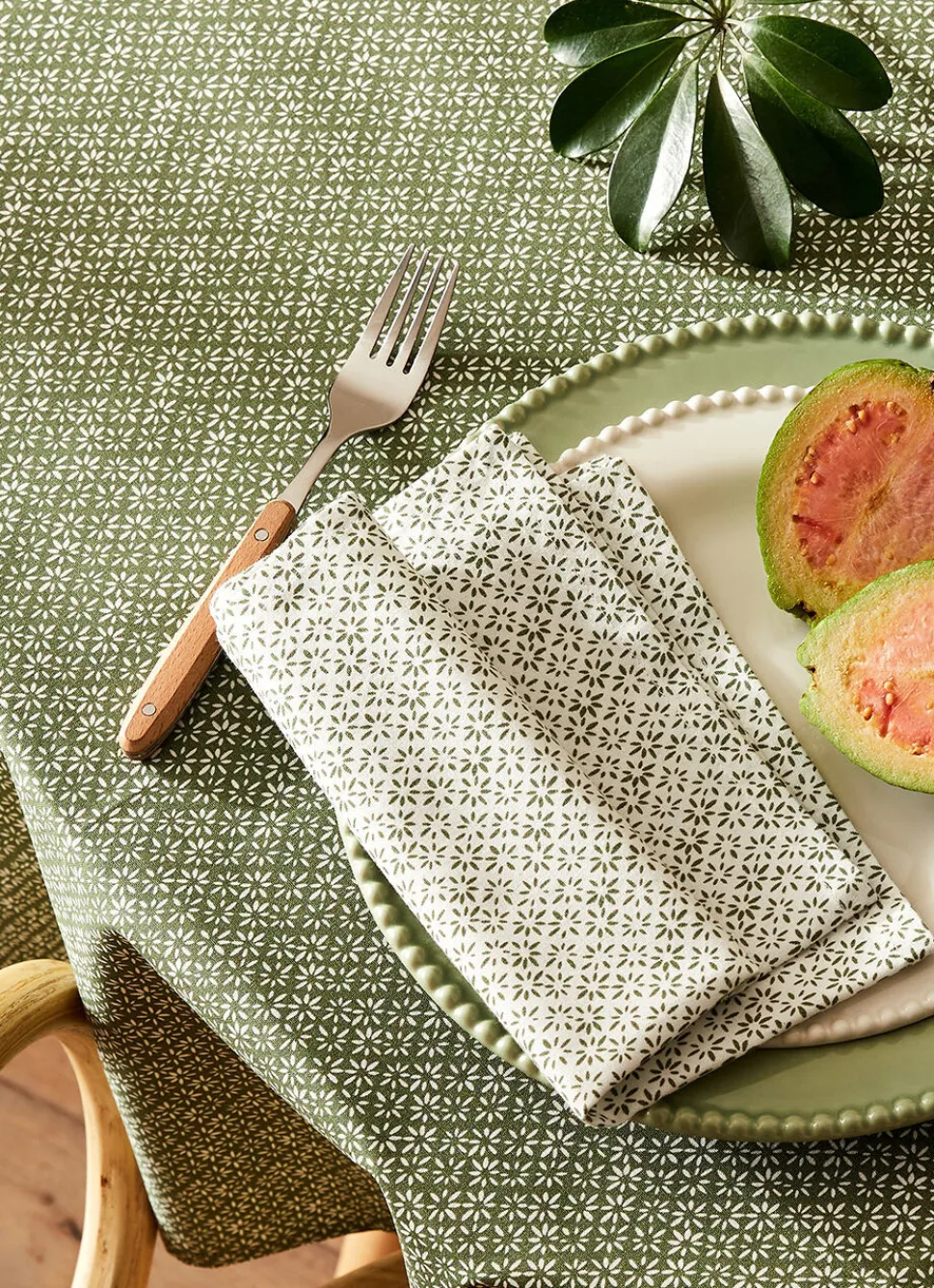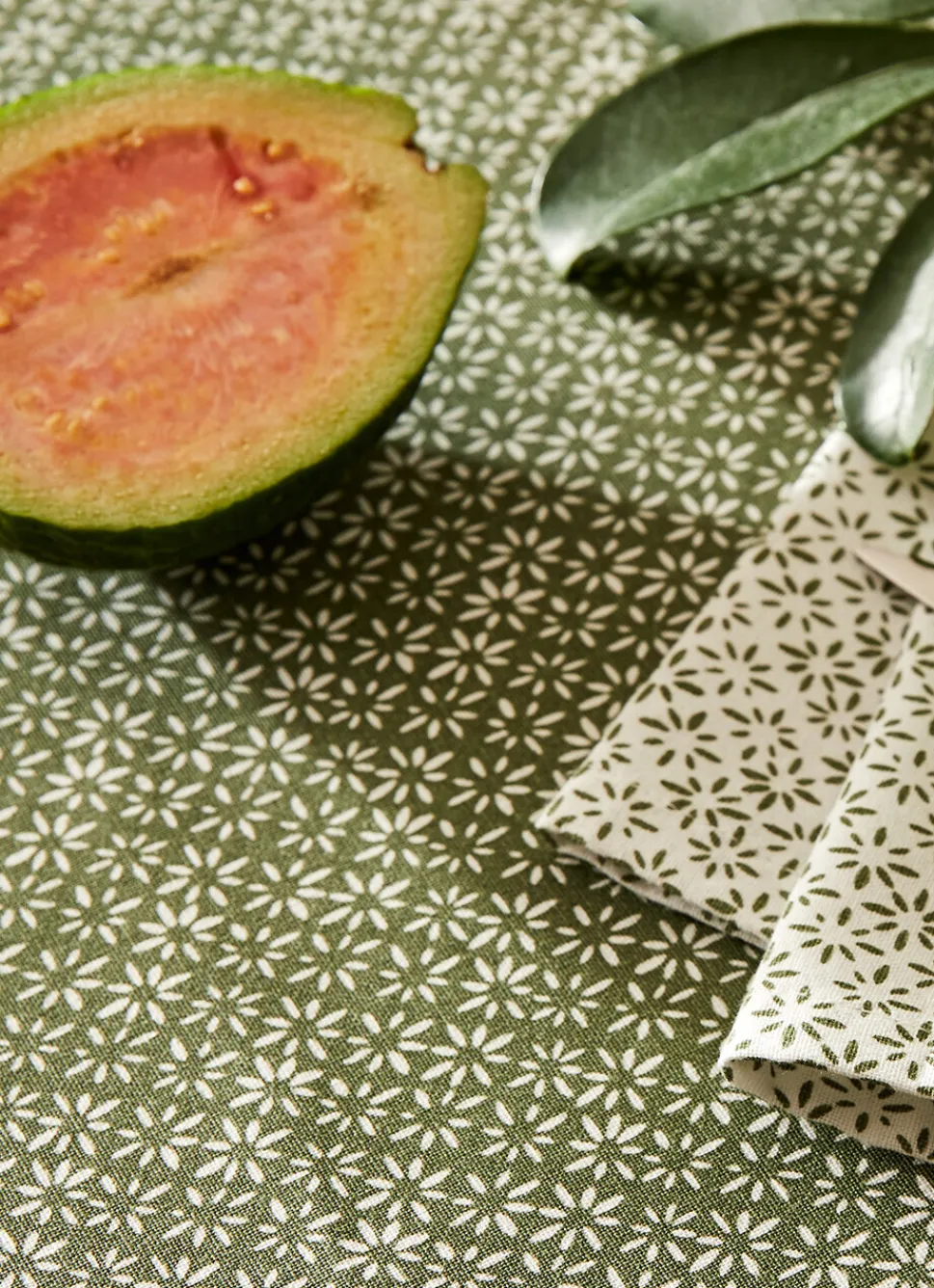 Clearance Bouchara NAPPE RONDE EN COTON ENDUIT IMPRIMÉ PETITES FLEURS KAKI/BLANC