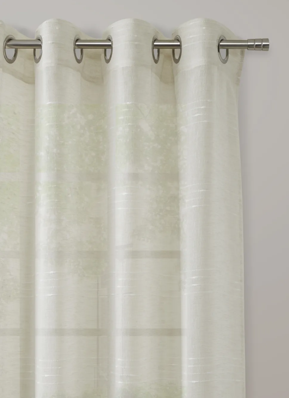 Voilage blanc à rayures horizontales en relief. Oeillets argentés mats. Dimensions (cm) : L140 x H260