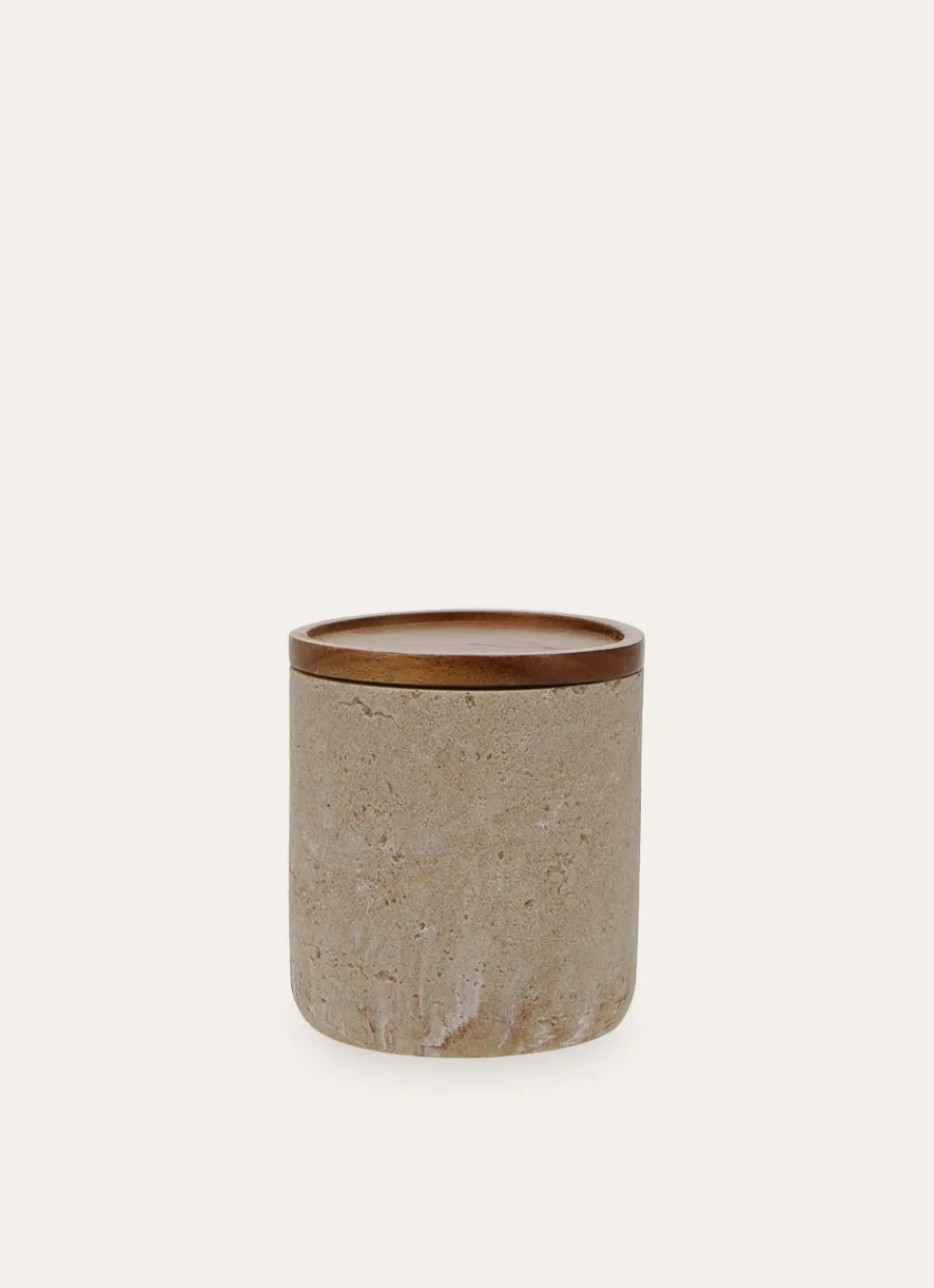 Apportez une touche raffinée à votre salle de bain avec ce pot au design effet marbre, équipé d’un couvercle en bois pour une fermeture pratique et élégante. Dimensions : H11 x D9,6 — Contenance : 399 ml.
