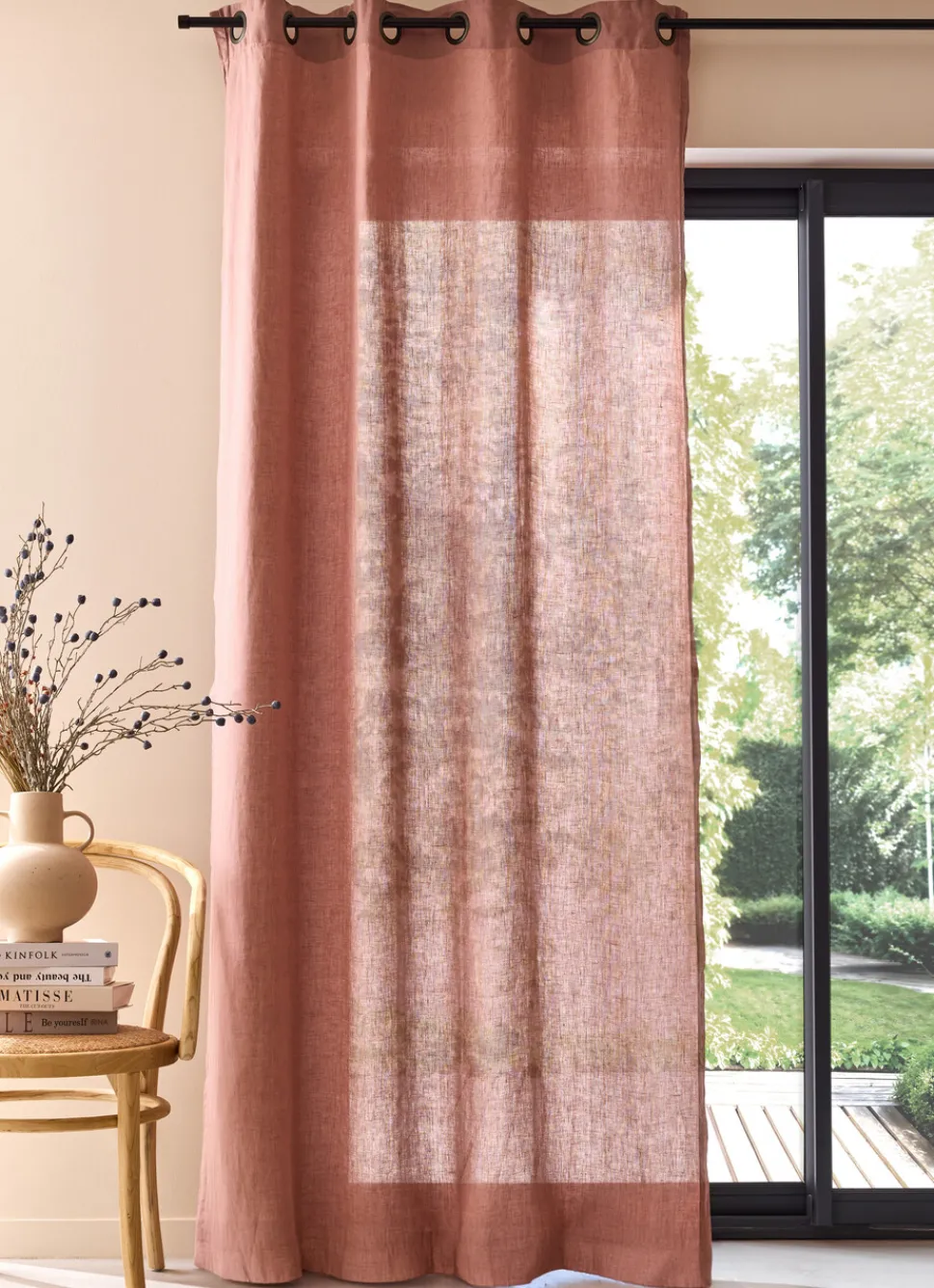 Discount Bouchara RIDEAU EN LIN LAVÉ UNI ROSE
