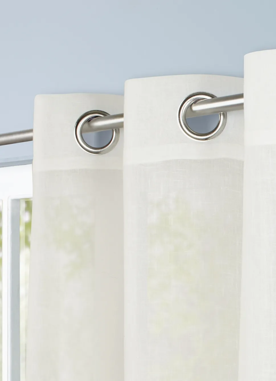 Voilage uni effet lin. S’enfile sur une tringle grâce à des oeillets argentés. Existe en plusieurs coloris. Dimensions (cm) : H300 x L140