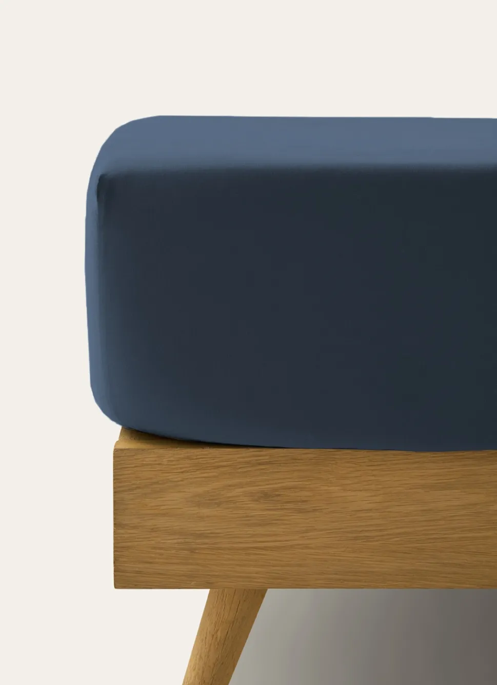 Hot Bouchara DRAP HOUSSE UNI EN COTON LAVÉ BIO BLEU ORAGE