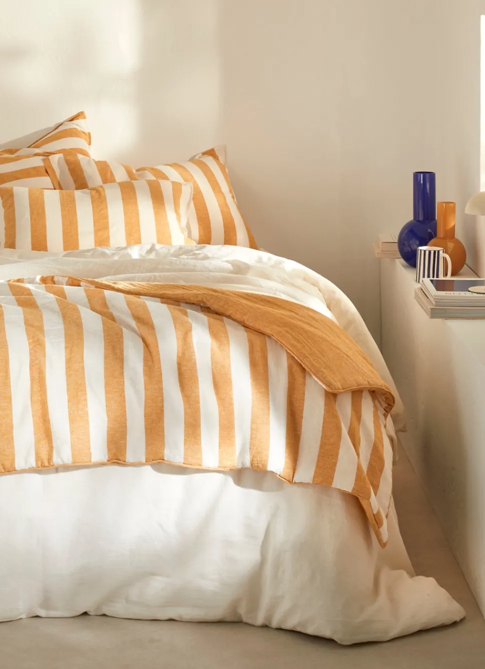 Hot Bouchara ÉDREDON MATELASSÉ EN MÉTIS COTON ET LIN CAFÉ MOUTARDE