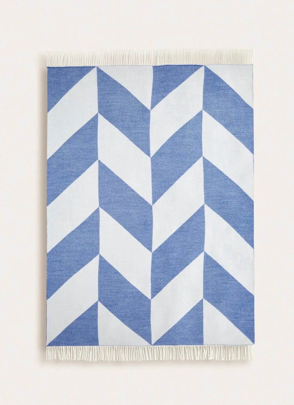 Hot Bouchara PLAID À FRANGES TISSÉ TEINT MOTIF GÉOMÉTRIQUE BLEU