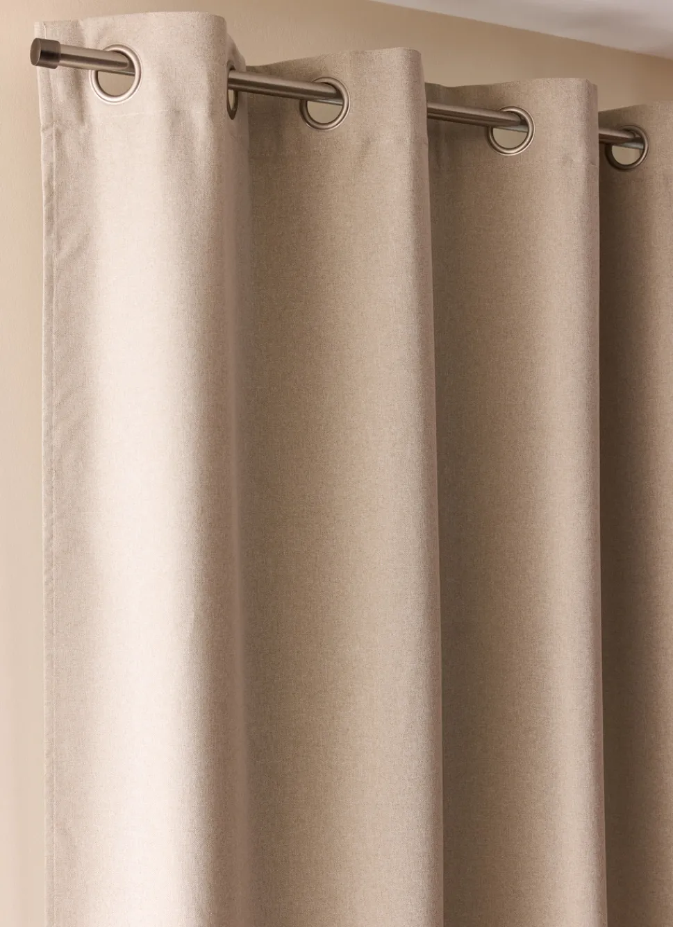 Ce rideau occultant bloque totalement la lumière grâce à son enduction acrylique au dos. Léger et fluide, il offre un toucher doux avec un aspect coton naturel. Son tissage chiné apporte une subtile texture pour un rendu élégant et moderne. De couleur beige moucheté clair, il est idéal pour habiller vos fenêtres tout en créant une ambiance cosy et intime. Son grand format est parfait pour les hautes fenêtres et baies vitrées. Certifié Oeko-Tex, il garantit un respect des normes environnementales et de santé. Finition : 8 oeillets argent mat diamètre 40 mm. Vendu à l’unité. Dimensions (cm) : H300 x L140
