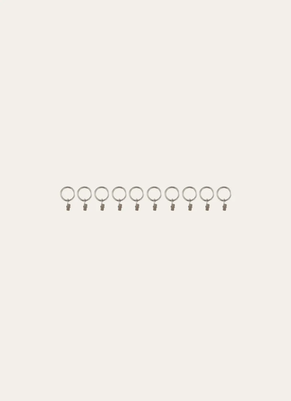 Lot de 10 anneaux en métal de diamètre moyen avec pince pour accrocher les rideaux droits sans oeillets. Existe en plusieurs coloris : blanc, noir, argent. Compatible avec des tringles jusqu’à 2,9 cm de diamètre, ce produit allie simplicité et polyvalence pour s’adapter à différents types d’installations. Dimensions (cm) : D3,2. Diamètre intérieur (cm) : 3.
