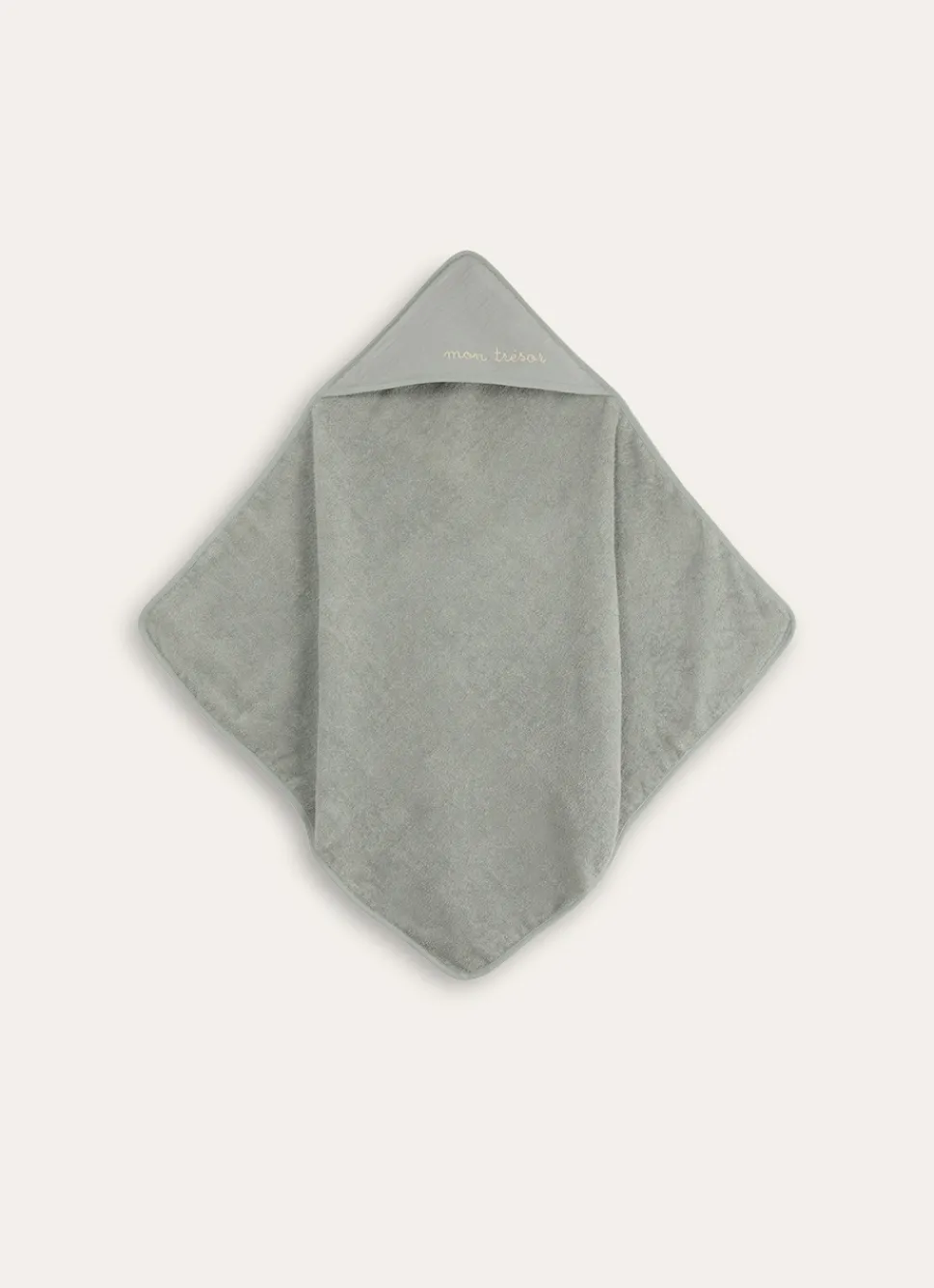 Jolie cape de bain unie en gaze de coton avec broderie « Trésor ». Produit certifié OEKO-TEX®. Dimensions (cm): 75 x 75