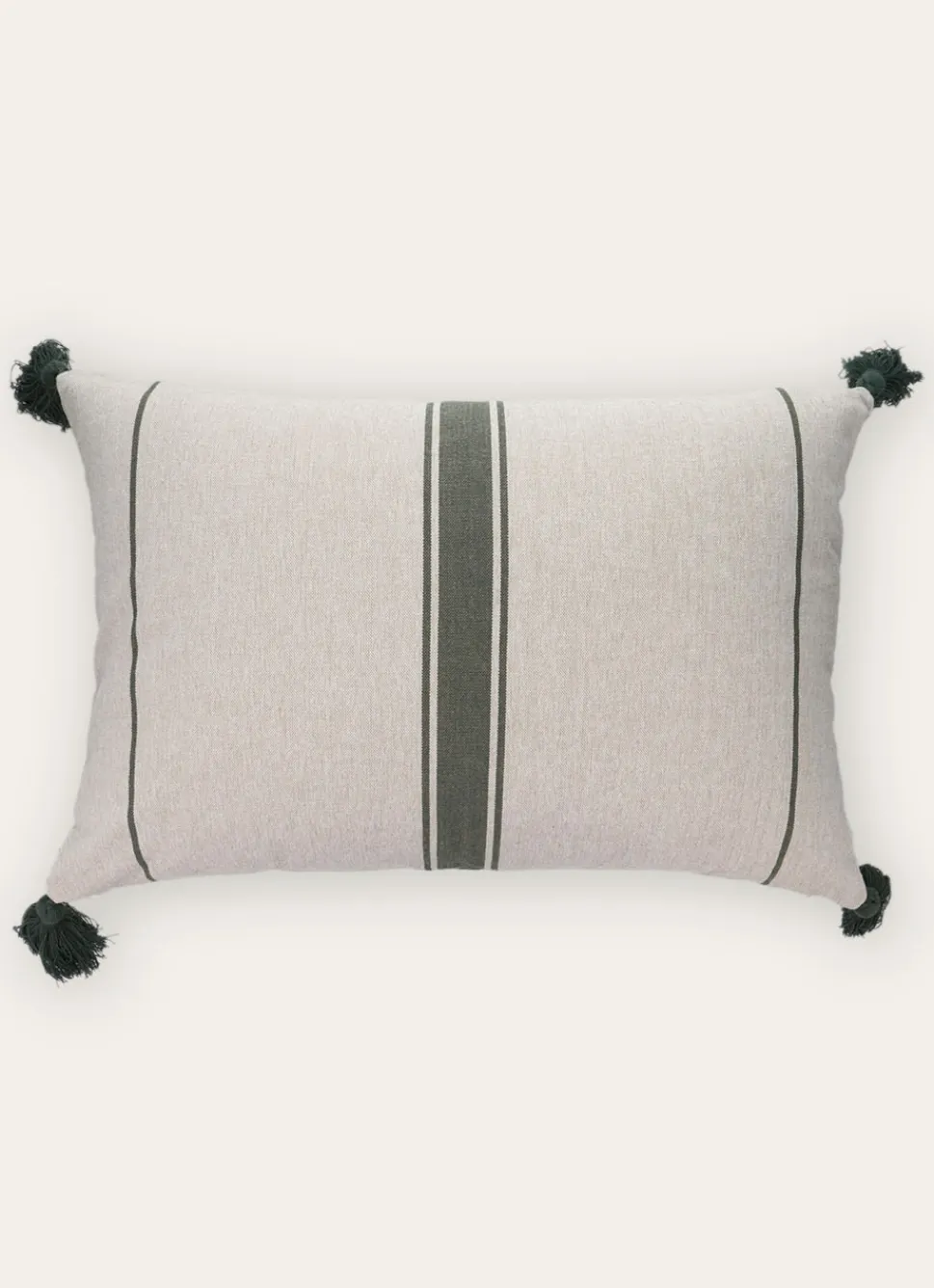 Apportez caractère et style à votre intérieur avec ce coussin en coton épais à rayures, agrémenté de finitions pompons élégantes. Déhoussable grâce à sa fermeture à glissière invisible, il est vendu avec son intérieur pour un confort immédiat. Produit certifié OEKO-TEX®. Dimensions (cm) : 40×60.