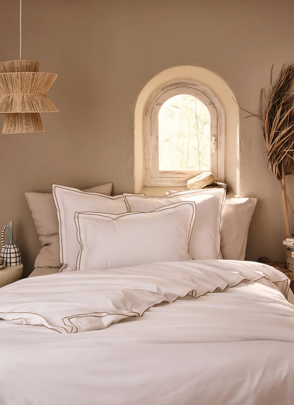 Apportez une touche de chic et d’élégance à votre chambre avec cette housse de couette en coton recyclé, tissée à 57 fils/cm². Composée de 50% de coton recyclé et 50% de coton, elle allie confort, durabilité et respect de l’environnement. Sa finition double bourdon contrasté ajoute une note raffinée, parfaite pour un style à la fois épuré et sophistiqué.Grâce à sa forme bouteille avec rabat, elle permet de border facilement le lit, assurant un maintien impeccable .Complétez votre parure avec les taies d’oreiller assorties de la même gamme, pour un ensemble parfaitement coordonné. Disponible en plusieurs dimensions. On adore !