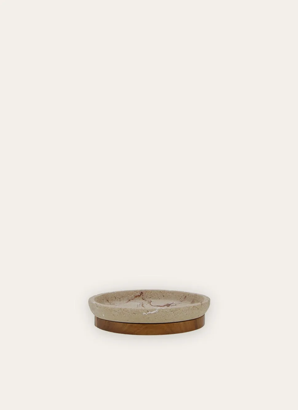 Apportez une touche élégante et naturelle à votre salle de bain avec ce porte-savon au design effet marbre, équipé d’un socle en bois pour une stabilité optimale. Dimensions (cm) : H3 x L13,4 x P9,8.