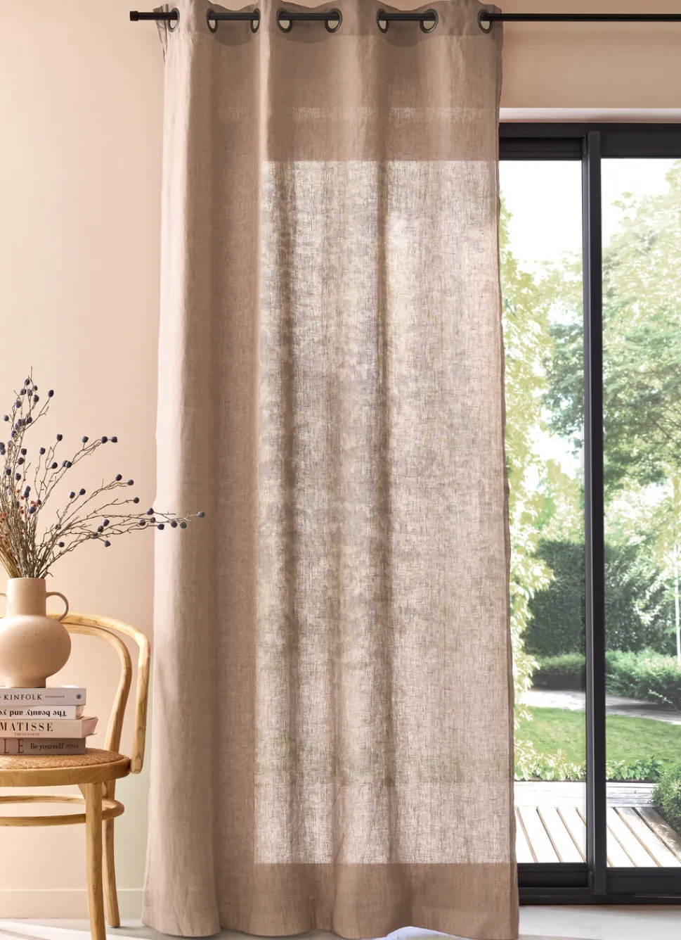 Online Bouchara RIDEAU EN LIN LAVÉ UNI CAFÉ AU LAIT