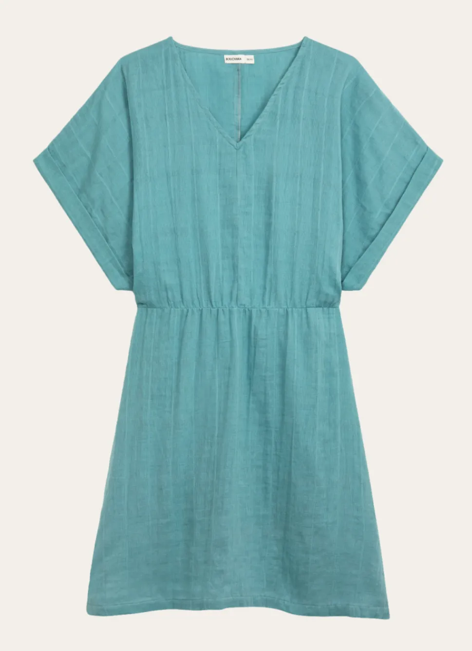 Online Bouchara ROBE MANCHES COURTES EN GAZE DE COTON TURQUOISE