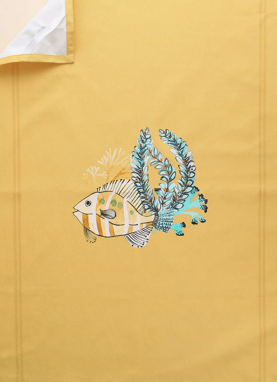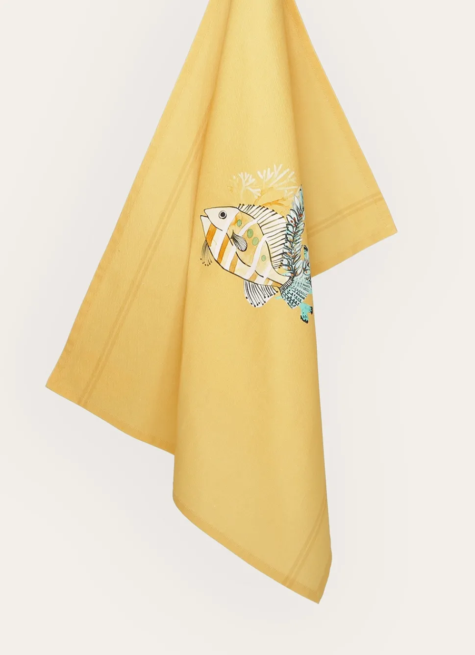 Online Bouchara TORCHON EN COTON IMPRIMÉ POISSONS ET CORAUX OCRE