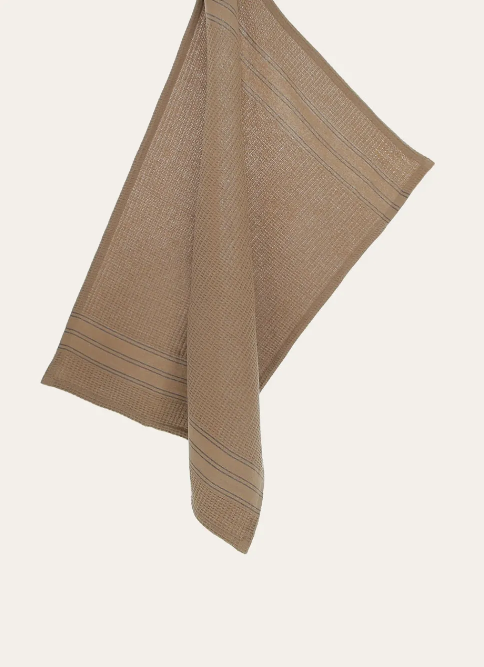 Online Bouchara TORCHON EN NID D’ABEILLE À RAYURES TABAC