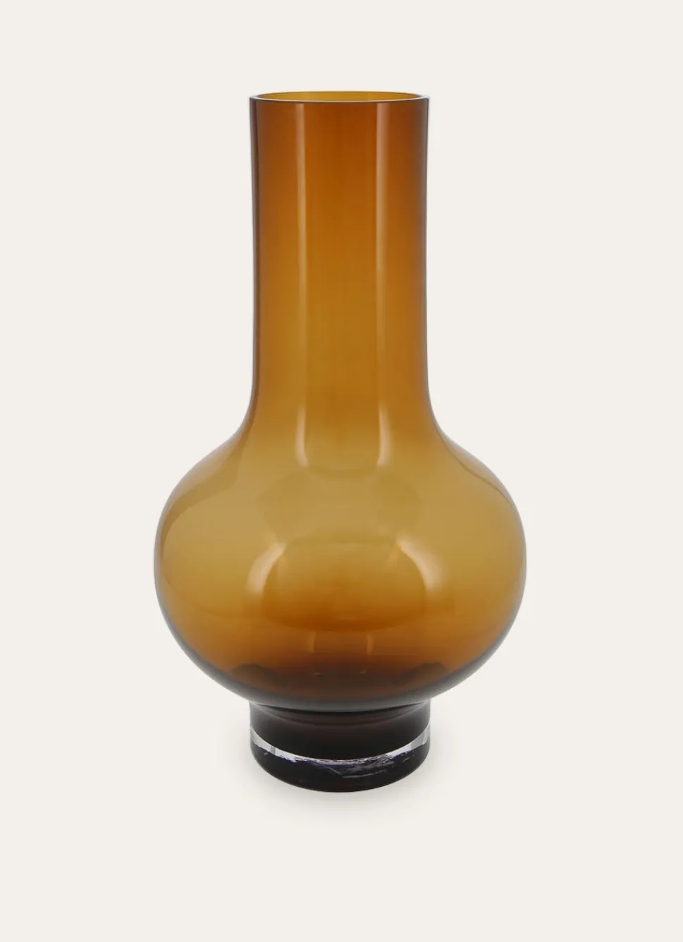 Ce vase en verre ambré séduit par sa teinte chaleureuse et sa base épaisse, qui lui confèrent stabilité et caractère. Entièrement façonné à la main selon la technique du soufflage à la bouche, chaque pièce révèle de subtiles variations et bulles d’air qui témoignent de son authenticité artisanale. Son design épuré met en valeur la profondeur de la couleur et fait de ce vase un objet à la fois décoratif et intemporel. Idéal pour accueillir quelques tiges fleuries ou sublimer un espace à lui seul. Dimensions (cm) : H32 x D18.