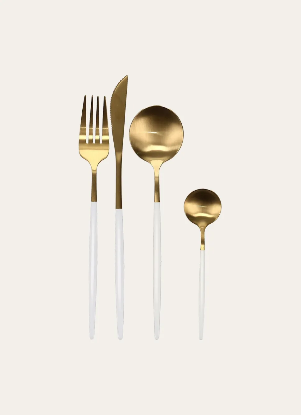 Ce service raffiné de 16 couverts dorés aux manches colorés apporte une touche d’éclat et de modernité à toutes vos tables, qu’il s’agisse d’un dîner convivial ou d’une réception sophistiquée. Son design élégant sublime chaque moment partagé autour d’un repas. Fabriqués en acier inoxydable, ces couverts allient finesse, durabilité et style contemporain. Le coffret est proposé en deux coloris intemporels : blanc/doré ou noir/doré, pour s’adapter à toutes les ambiances de table. Dimensions par pièce (cm) : Cuillère à café: H13,9 – Couteau: H21,1 – Cuillère à soupe: H21,1 – Fourchette: H21.
