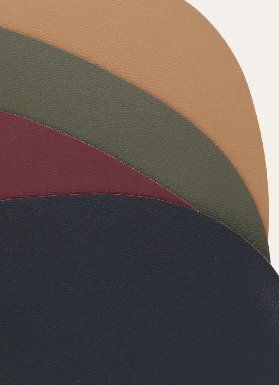 Apportez une touche moderne et minérale à votre table avec ce set de table effet cuir en forme de galet. Pratique et esthétique, il protège élégamment votre table tout en se nettoyant d’un simple coup d’éponge. Une solution idéale pour allier style et facilité d’entretien au quotidien. Dimensions (cm) : L38 x H33.