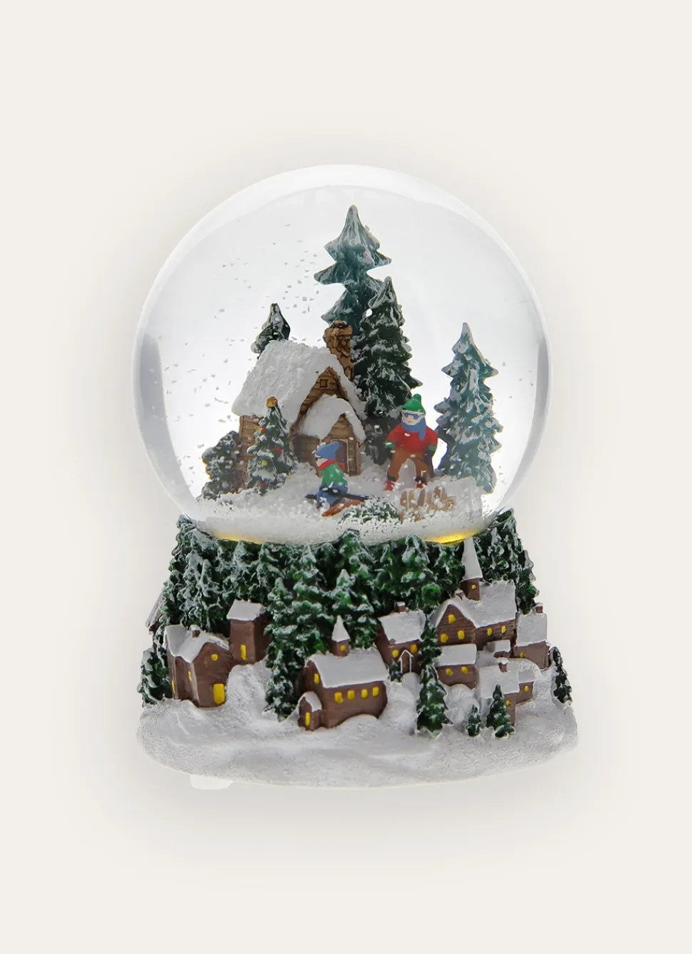 Sale Bouchara BOULE À NEIGE MUSICALE ET LUMINEUSE CHÂLET ENNEIGÉ VERT