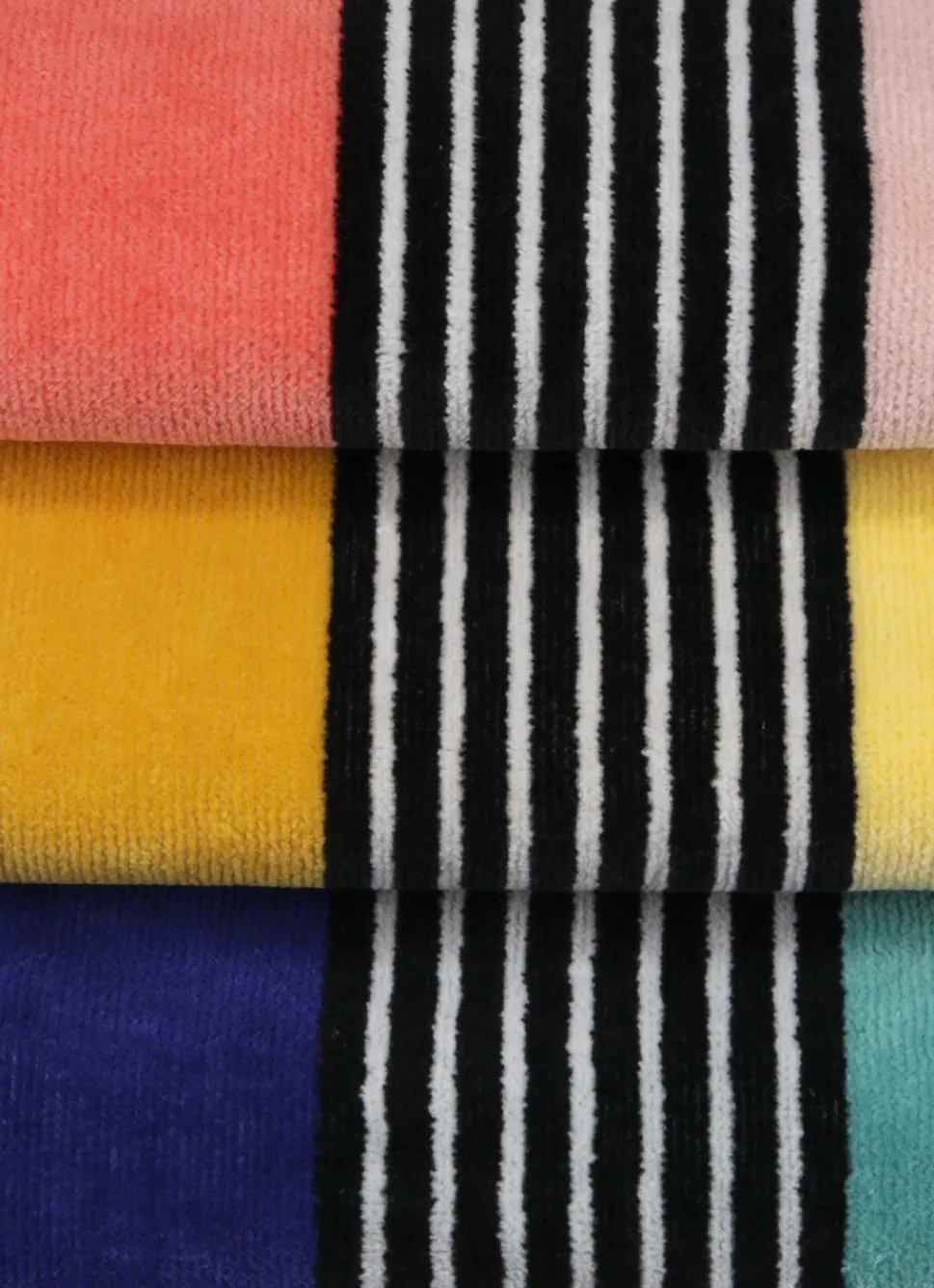 Apportez une touche d’élégance à votre salle de bain avec cette serviette de toilette en velours bicolore. Son camaïeu de couleurs est sublimé par une rayure graphique noire pour un style moderne et raffiné. Douce et absorbante, elle offre un confort optimal après chaque bain. Certifiée Oeko-Tex, elle respecte les normes environnementales. Dimensions : 50 x 90 cm.