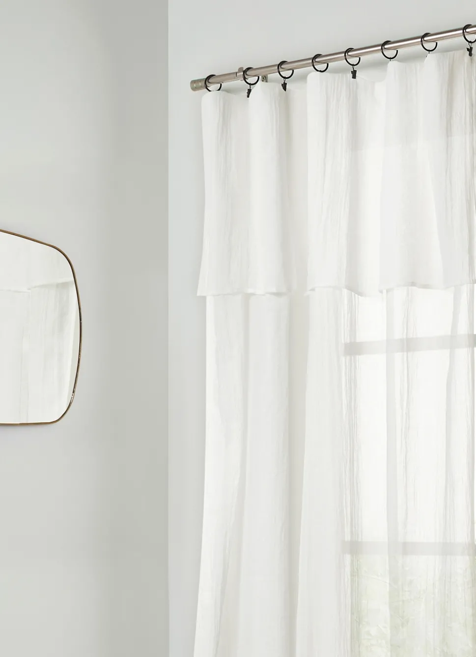 Voilage légèrement froissé pour un effet brut et naturel. La hauteur max est de 300 cm. Vous choisissez de l’adapter grâce au revers de finition que vous positionnez à la hauteur de votre choix. Anneaux à pince non fournis. Dimensions (cm) : H300 x L140