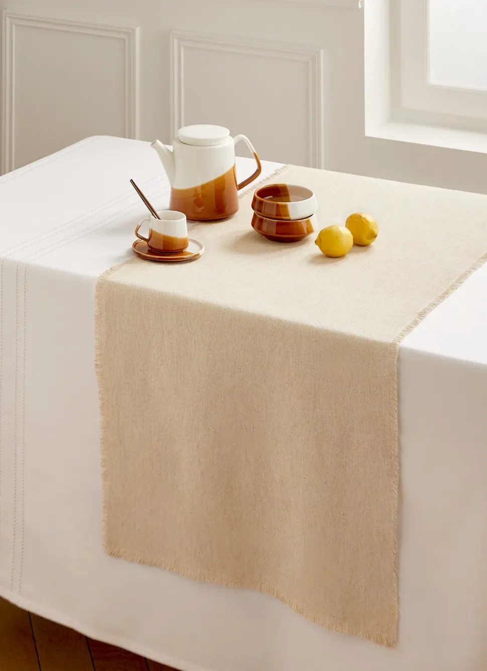 Best Bouchara CHEMIN DE TABLE EN COTON ET LIN UNI À FRANGES NATUREL