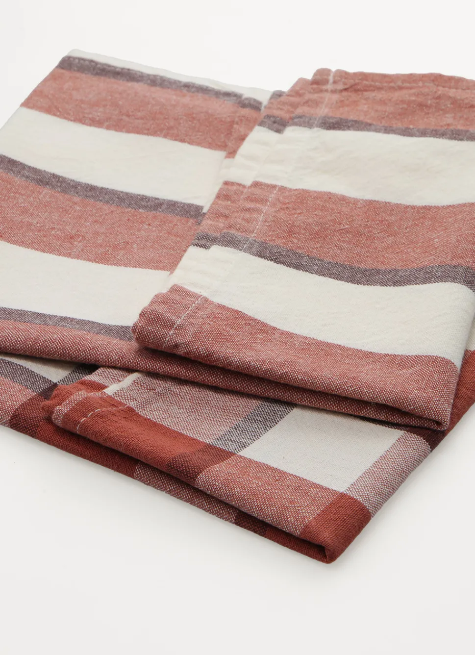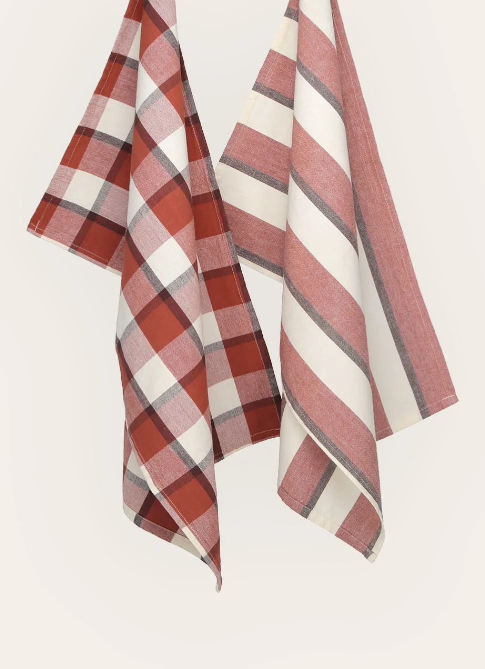 Best Bouchara LOT DE 2 TORCHONS CARREAUX & RAYURES BRIQUE