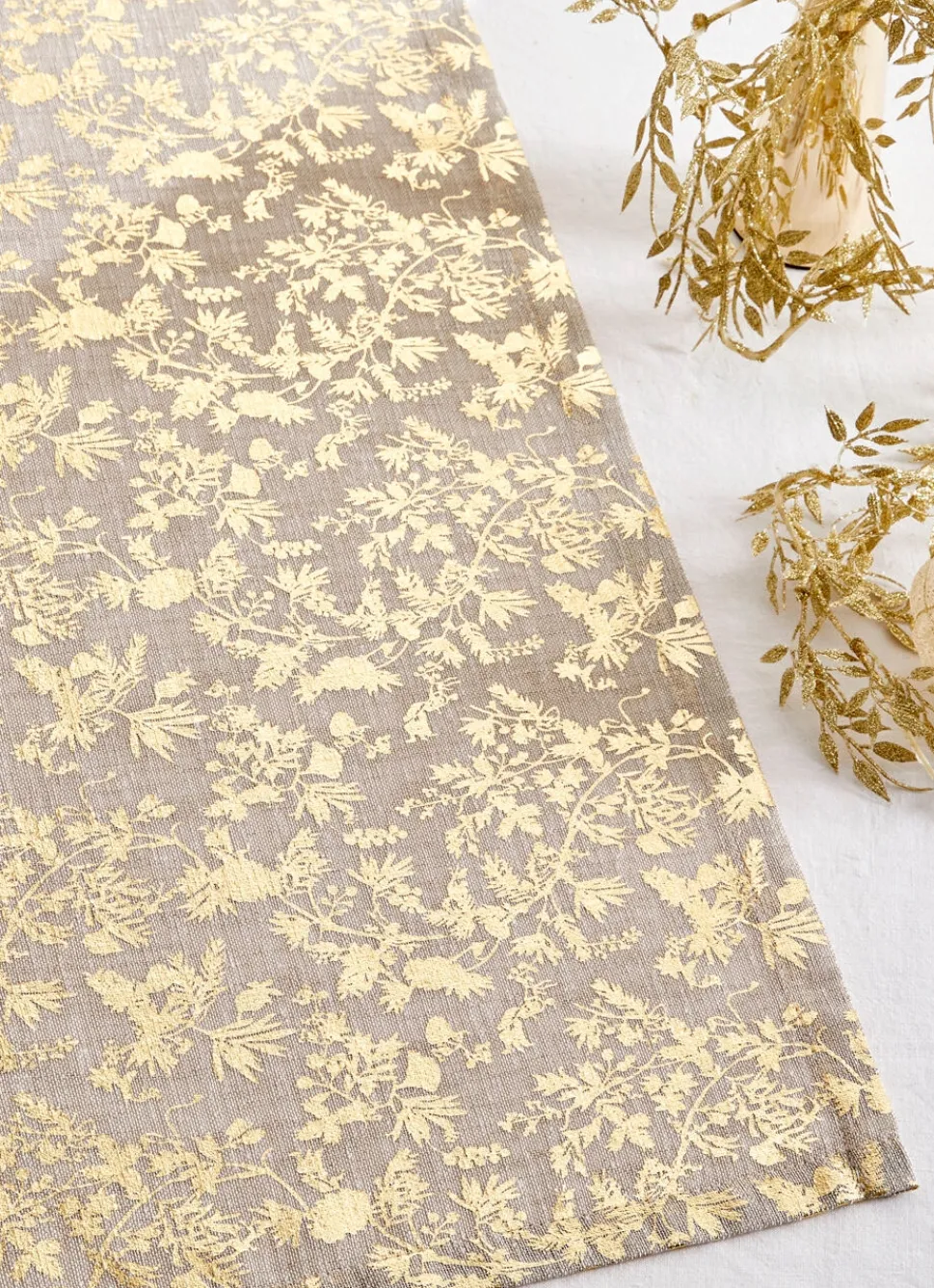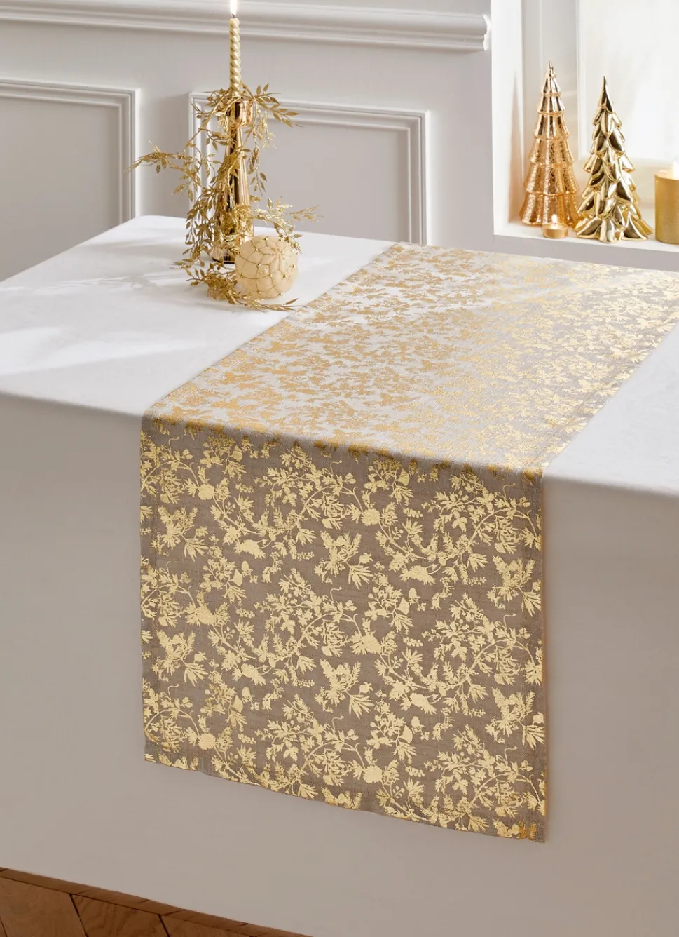Bouchara CHEMIN DE TABLE IMPRIMÉ FEUILLES DÉES OR
