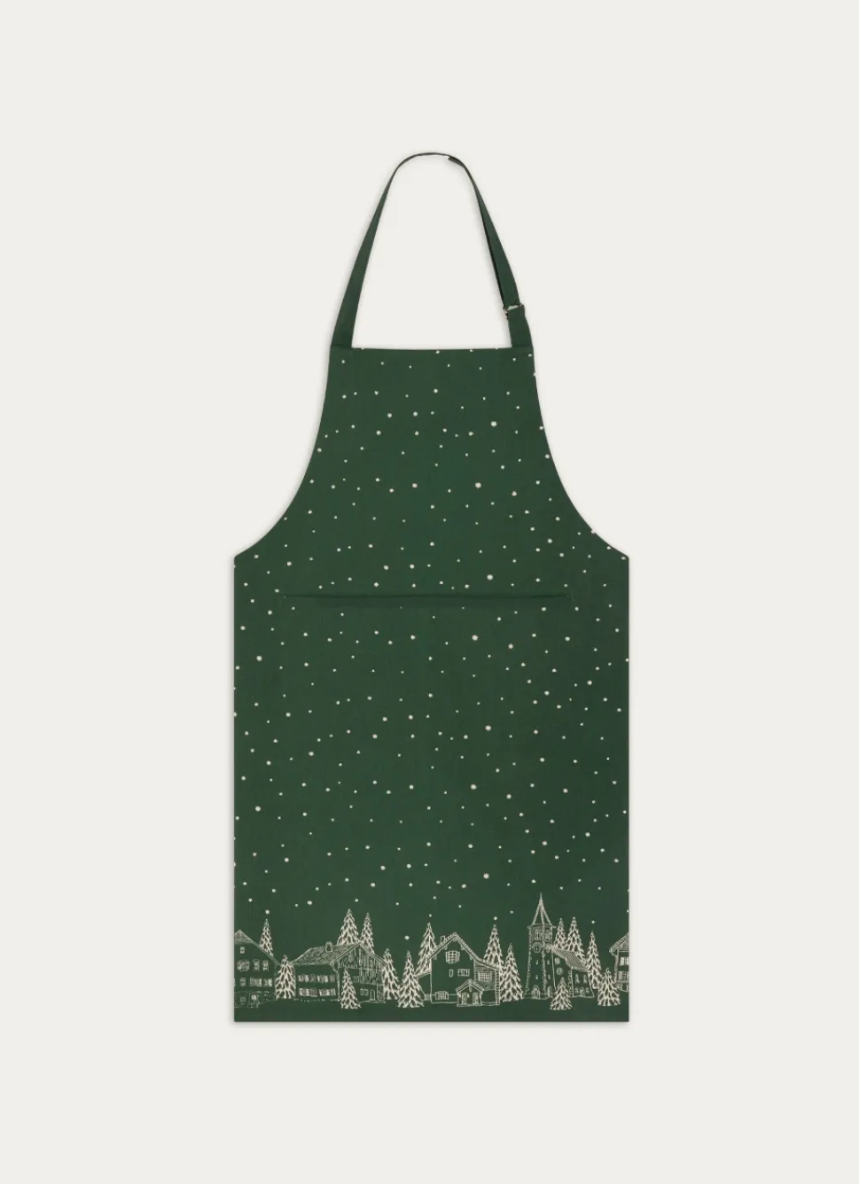 Bouchara TABLIER EN COTON IMPRIMÉ MAISONS SOUS LA NEIGE VERT