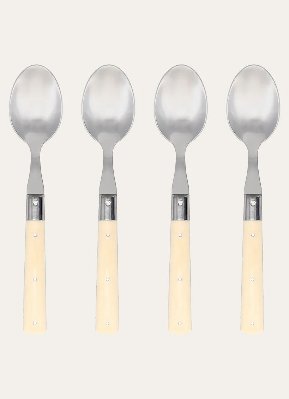 Apportez du raffinement à votre table avec ce coffret de 4 cuillères à soupe en inox pleine soie. Leur manche en ABS ivoire offre une prise en main confortable et une touche d’élégance intemporelle. Avec une épaisseur de 1,5 mm, elles allient robustesse et qualité pour un usage quotidien. Fabriquées en France et compatibles avec le lave-vaisselle, elles sont à la fois pratiques et durables.