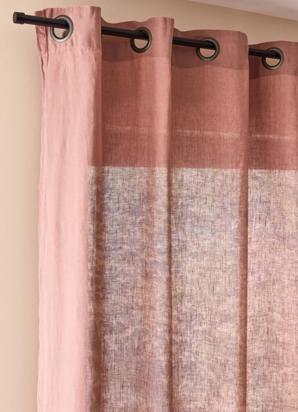 Discount Bouchara RIDEAU EN LIN LAVÉ UNI ROSE