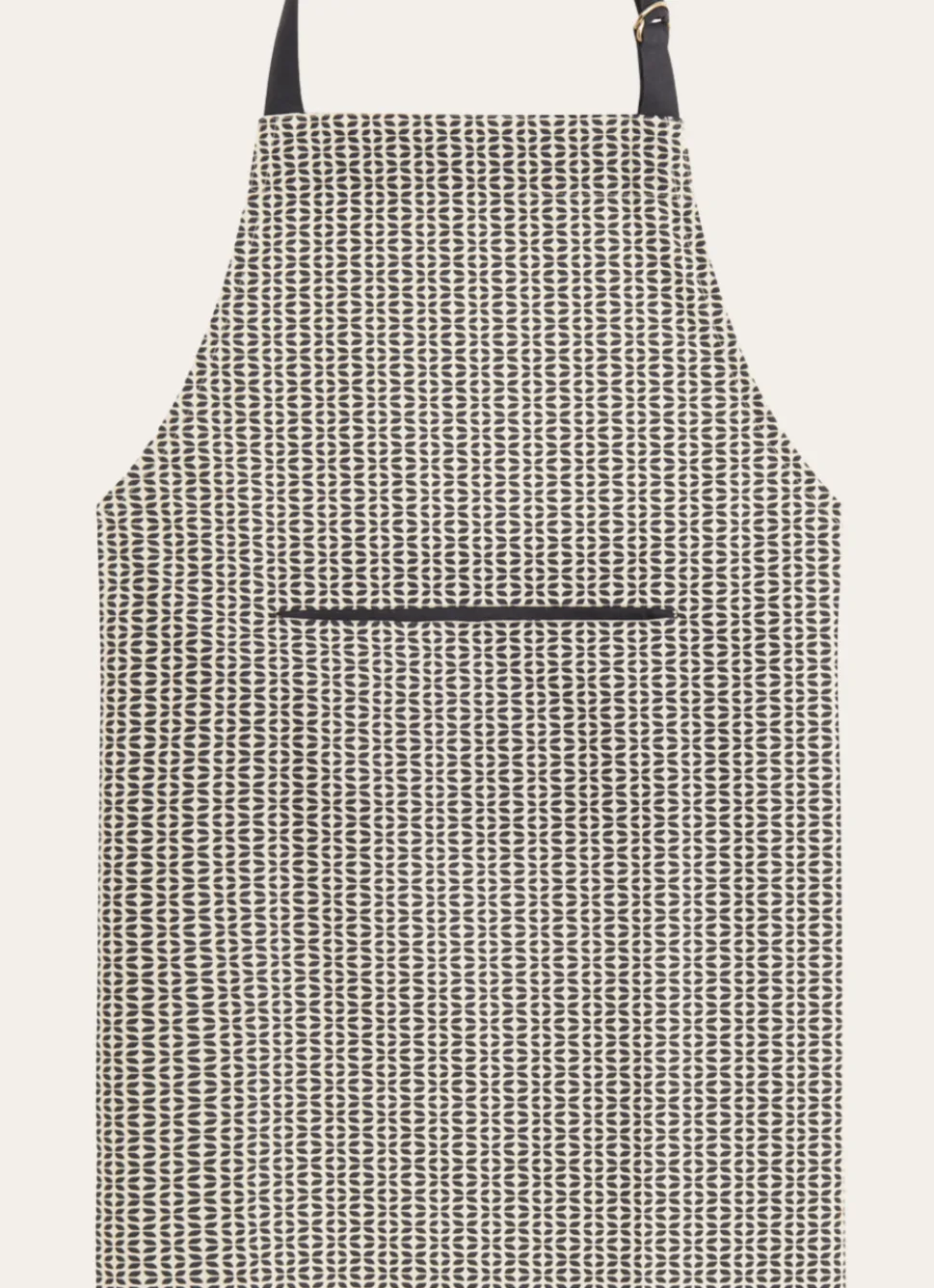 Tablier en coton imprimé mini motifs, tour de cou ajustable, 1 grande poche devant.. Ajoutez une touche graphique à votre cuisine ! Produit fabriqué en Inde. Existe en plusieurs coloris. Dimensions (cm) : 70 x 85.