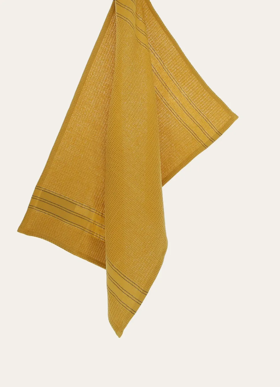 Discount Bouchara TORCHON EN NID D’ABEILLE À RAYURES OCRE