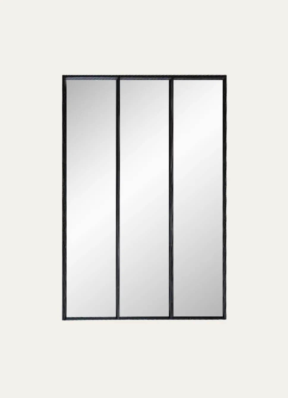 Grand miroir en métal noir au style industriel. Idéal pour ajouter de la modernité à votre décoration d’intérieur. Dimensions (cm) : H120 X L95