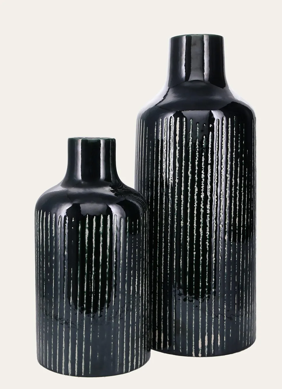 Online Bouchara GRAND VASE ÉMAILLÉ AVEC LIGNES VERT FONCÉ
