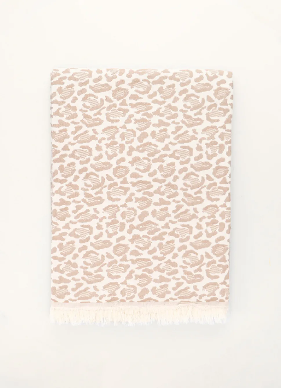 Online Bouchara PLAID EN COTON JACQUARD MOTIF LÉOPARD BEIGE