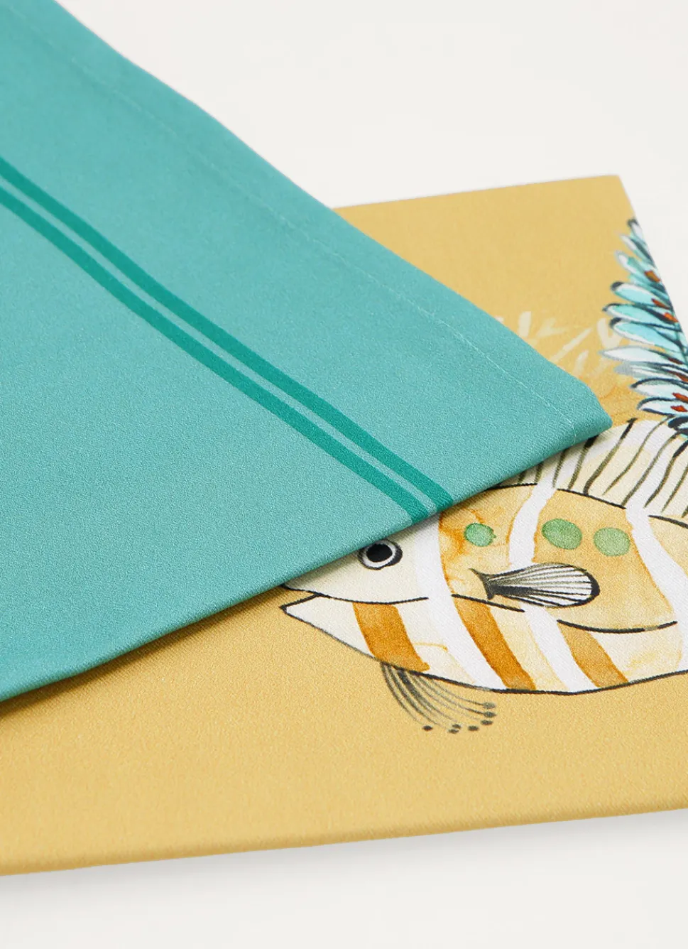 Online Bouchara TORCHON EN COTON IMPRIMÉ POISSONS ET CORAUX OCRE
