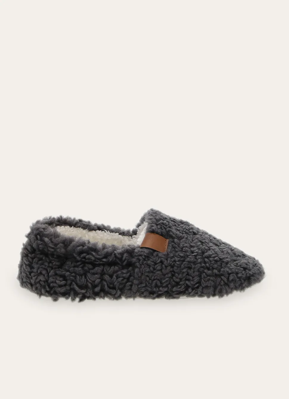 Outlet Bouchara CHAUSSONS UNIS EN SHERPA AVEC DÉTAIL SIMILI CUIR GRIS FONCE