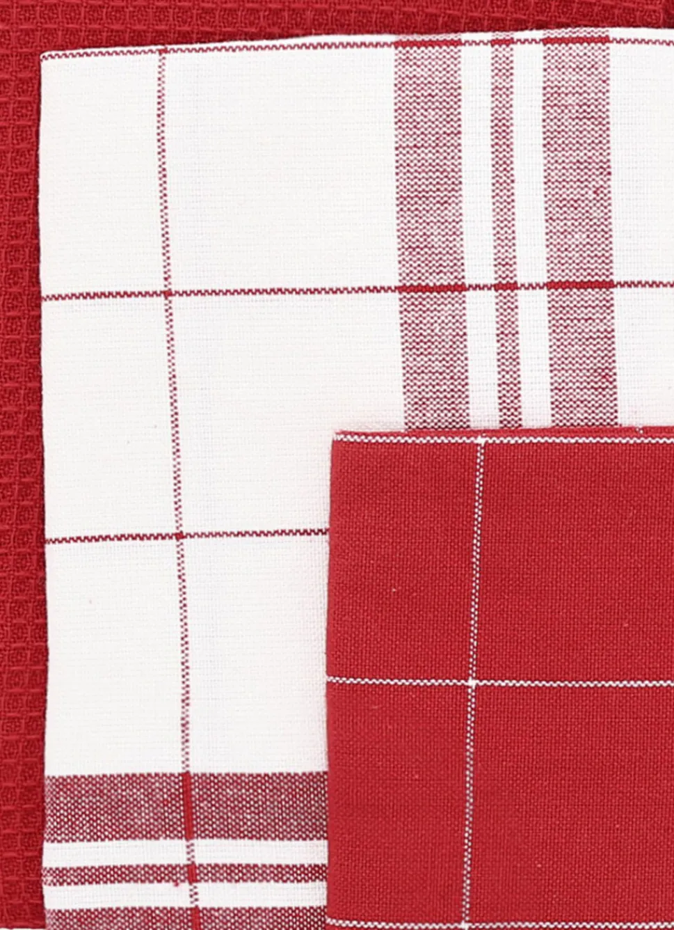 Lot de 3 torchons en coton : 2 à carreaux, tissés fil-teint et 1 torchon uni en nid d’abeille. Dimensions (cm) : H70 x L45. Existe en plusieurs coloris.