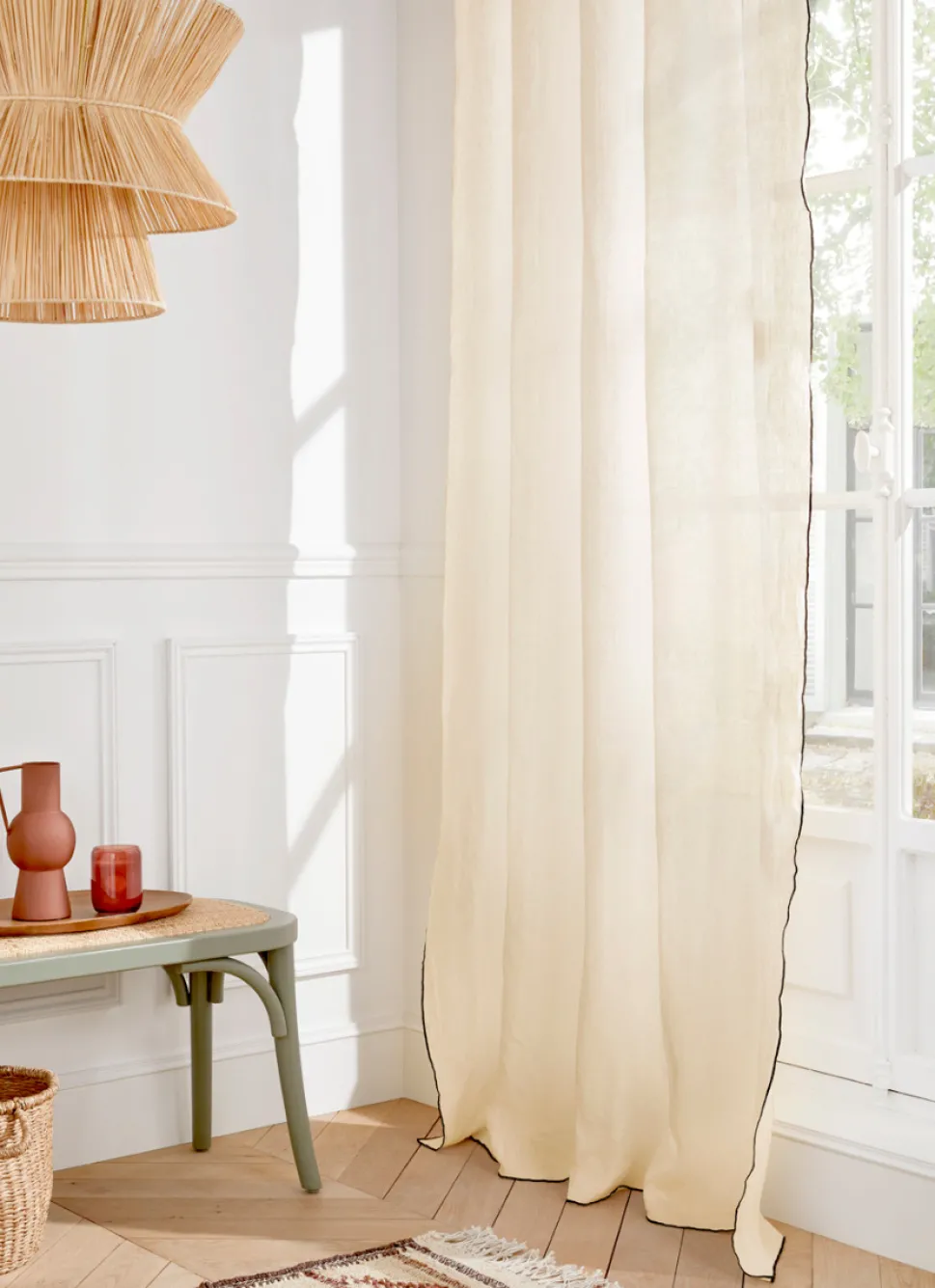 Outlet Bouchara RIDEAU EN LIN LAVÉ ET BOURDON NATUREL